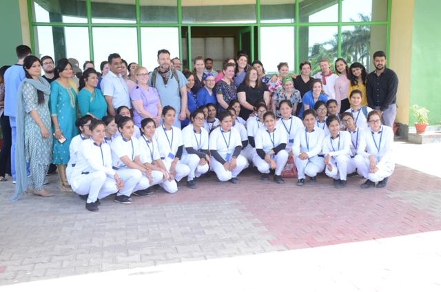 Students of Amar professional college of nursing doing checkup at Dyalpura on 7th free health checkup camp. Top nursing college in Punjab near Mohali.