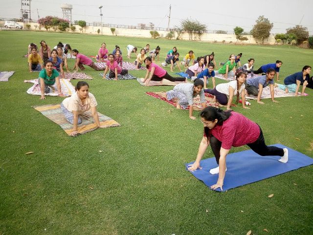 Students of Amar Professional college of nursing in Yoga class. Best college of nursing in Punjab near Chandigarh , Zirakpur...